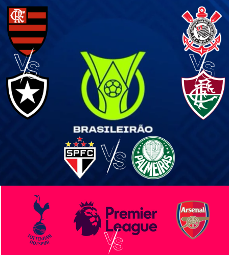 Este fim de semana promete emoções eletrizantes com grandes confrontos! No sábado, o embate entre Flamengo e Botafogo promete agitar as torcidas cariocas e no domingo, os olhos estarão voltados para o duelo entre Corinthians e o Fluminense. Segunda-feira temos o São Paulo e o Palmeiras que duelam pela vitória! Na Premier League temos o confronto entre o Tottenham e o Arsenal, garantindo momentos de pura adrenalina e rivalidade intensa na Europa!